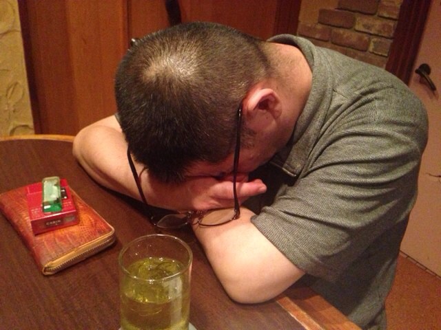 ボックス席のソファで爆睡してました。